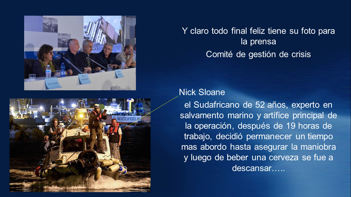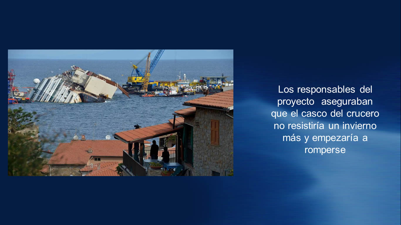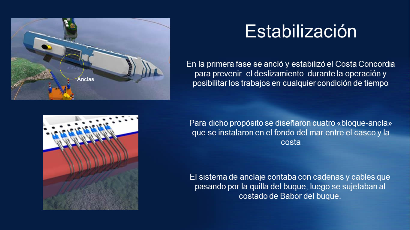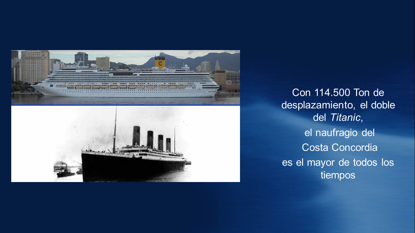 Su semihundimiento el 13 de enero de 2012 y su reflotado culminado el 16 de septiembre de 2013 luego de una genial obra de ingeniería.
