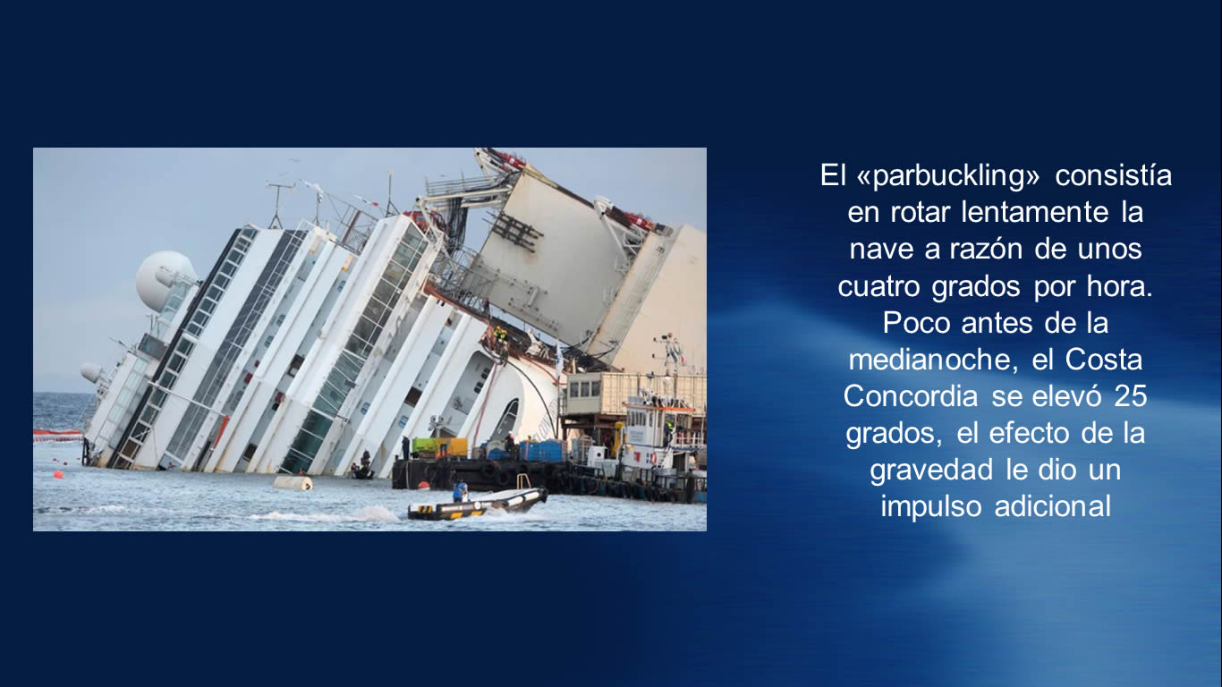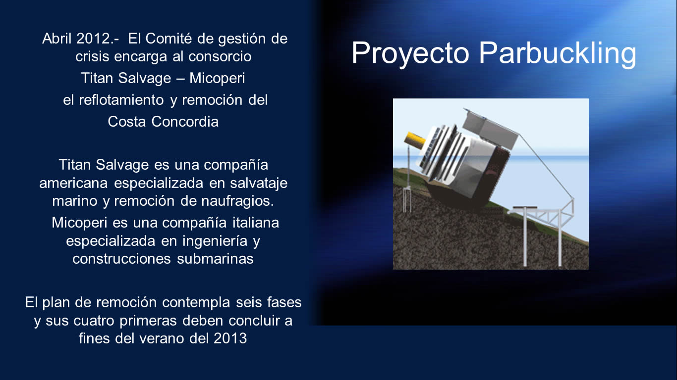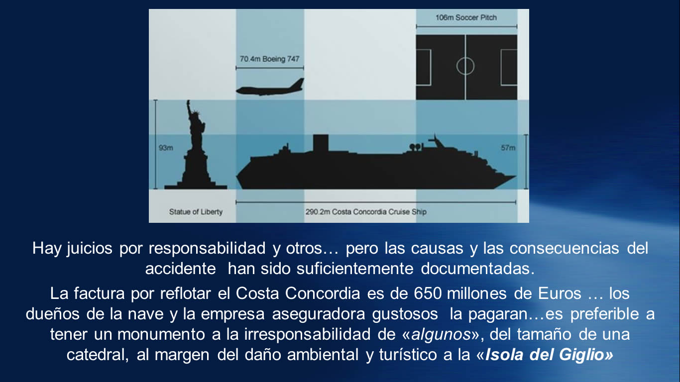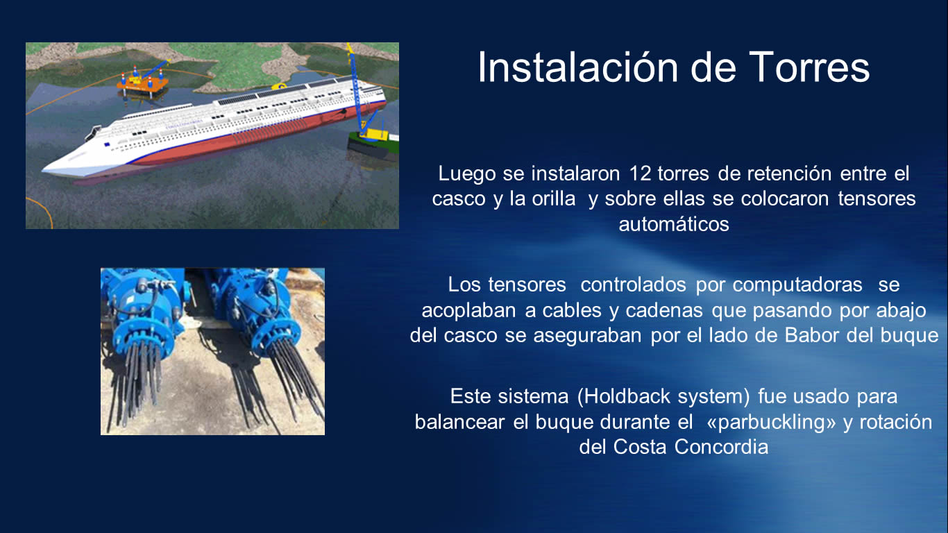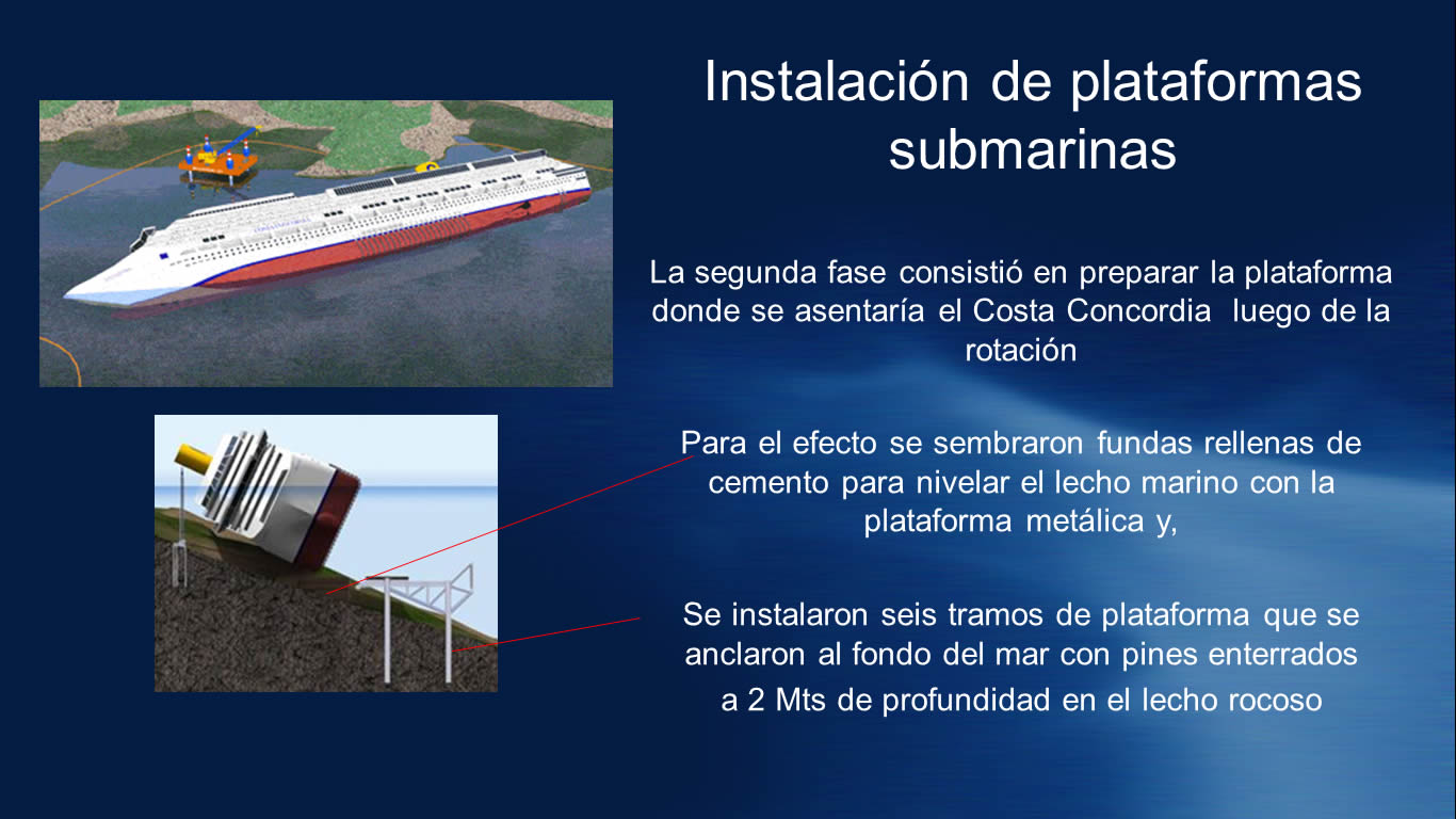 Su semihundimiento el 13 de enero de 2012 y su reflotado culminado el 16 de septiembre de 2013 luego de una genial obra de ingeniería.